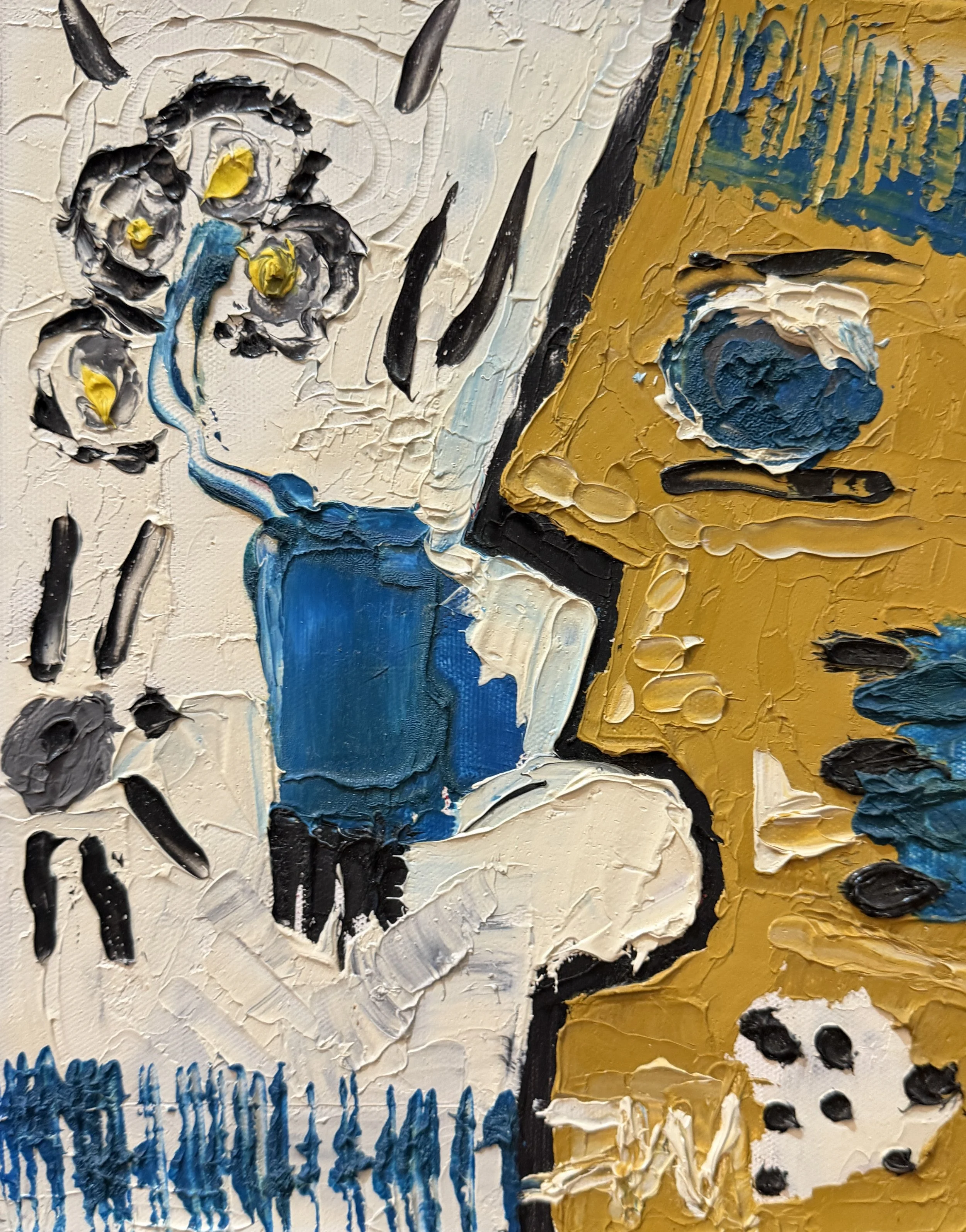The presentation is shaped through shifts in medium, scale and perception. Adrianne Gojak’s sculptural contribution introduces a spatial counterpoint that alters how surrounding works are read, turning the viewing experience into something more physical and relational. Surface gives way to volume, distance becomes part of the composition and the exhibition begins to function as an environment rather than a sequence of separate pieces. This dialogue between works creates a setting in which visual form is experienced through movement, proximity and changing attention.
